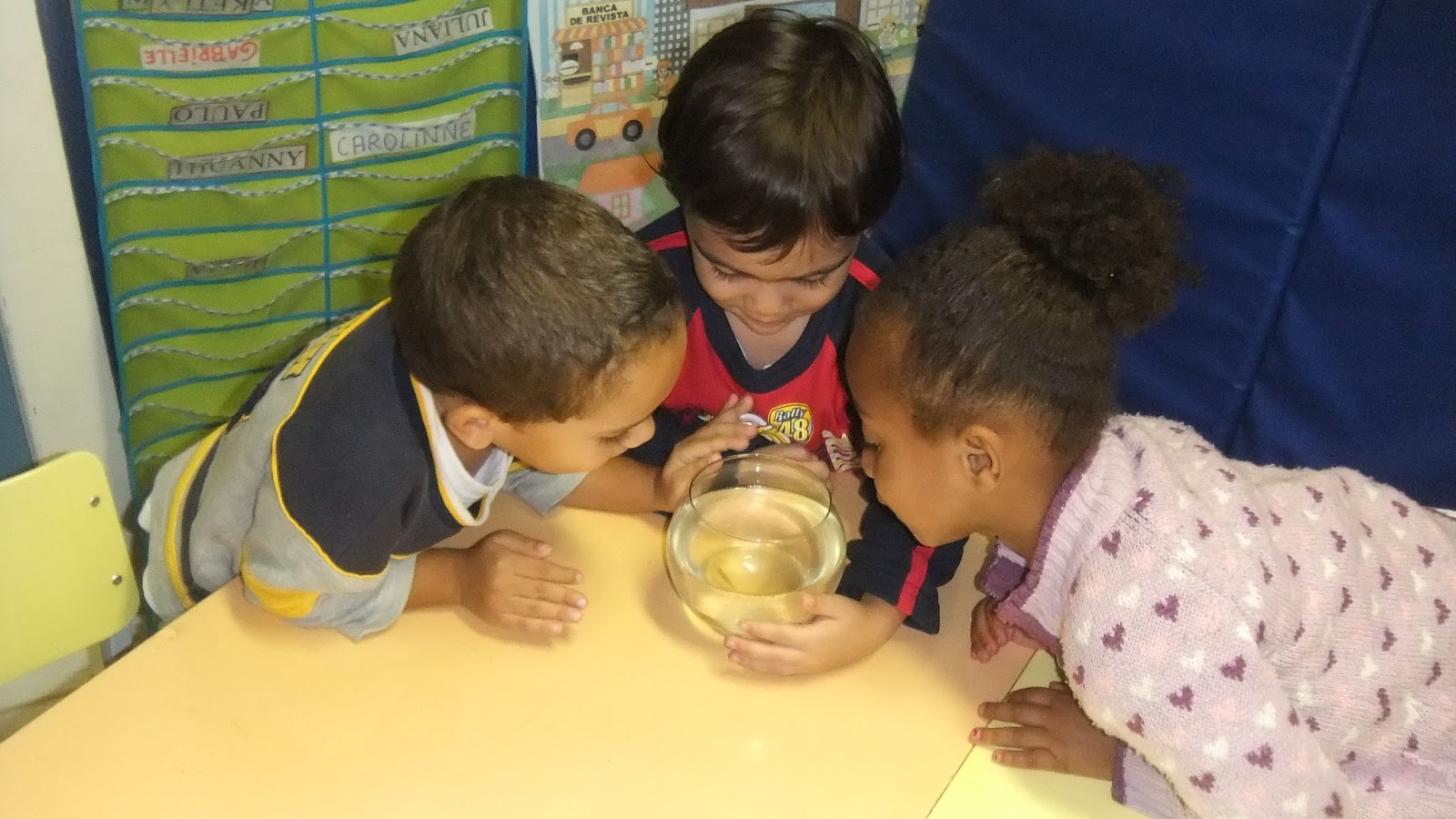 | Recebemos a visita dos peixinhos e aproveitamos para conversar sobre os animais domésticos e os selvagens e que precisamos tratá-los bem |